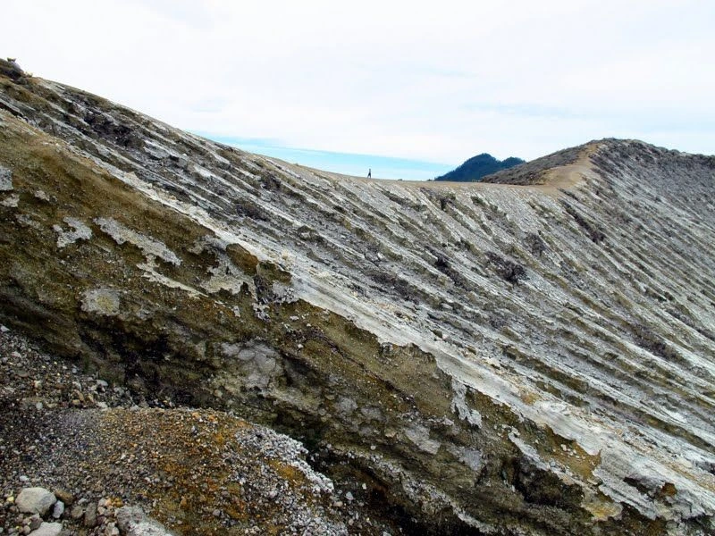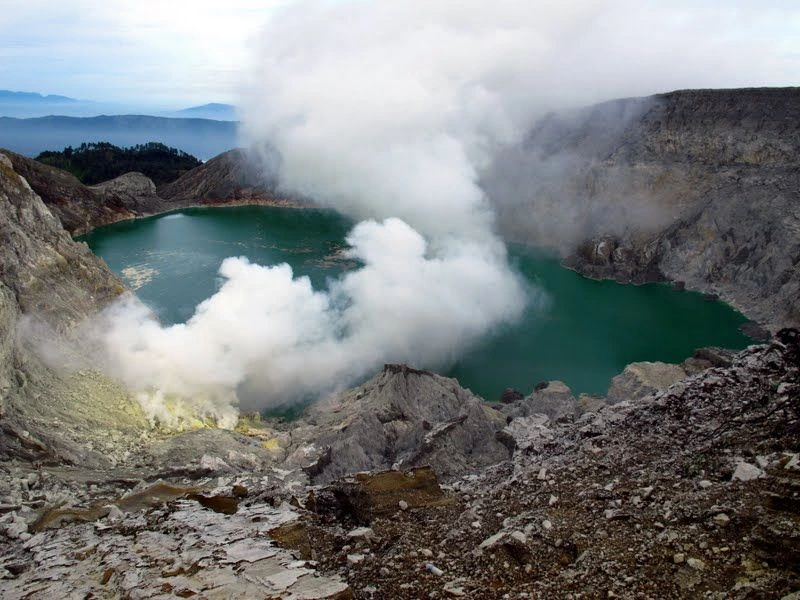 bromine rode all day through a continuous village - the most populous island in the world (that's me on Java). We sat at the erupting volcano two days and covered with a dense layer of ash, another early morning again boarded the minibus and drove to the next volcano - Kawa Ijen.