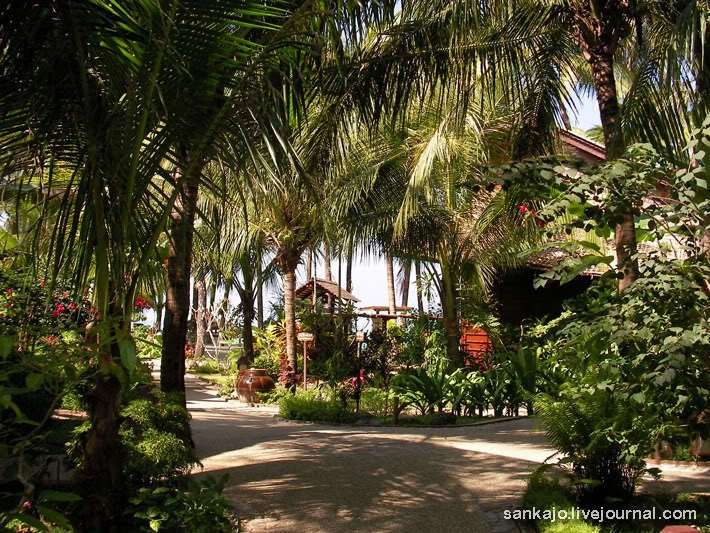 Absolutely deserted beach. Clear blue sea and white sand crunchy underfoot. Come see what we have in our hotel. It turned out that it has anything even rent motorbikes that Myanmar is very cool. Truth and price sickly, something like $ 10 per hour. A small tour of the Amata. The main entrance.