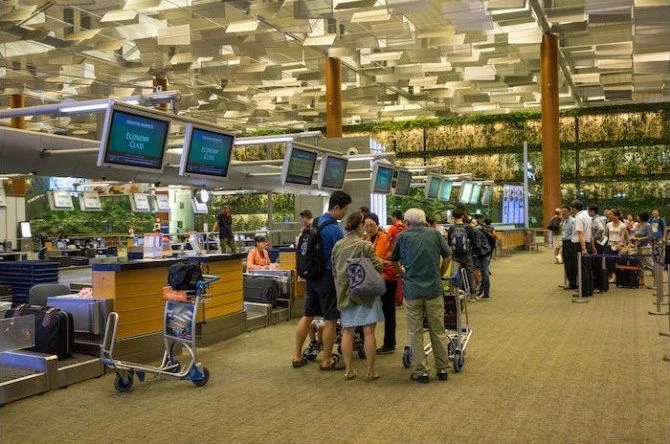 I forgot that in Changi was magnificent hall to register specifically for first-class passengers.