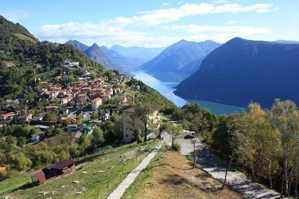 View from Mount Bre Lake Lugano. Here you can climb on a cable car. For those who want to save money, you can get here by bus 12th route that goes from the center to the village Bre. The ticket price of 4.5 francs to one side. From the village up to the observation deck Bre go for about twenty minutes. Or by car. Track top - solid streamers.