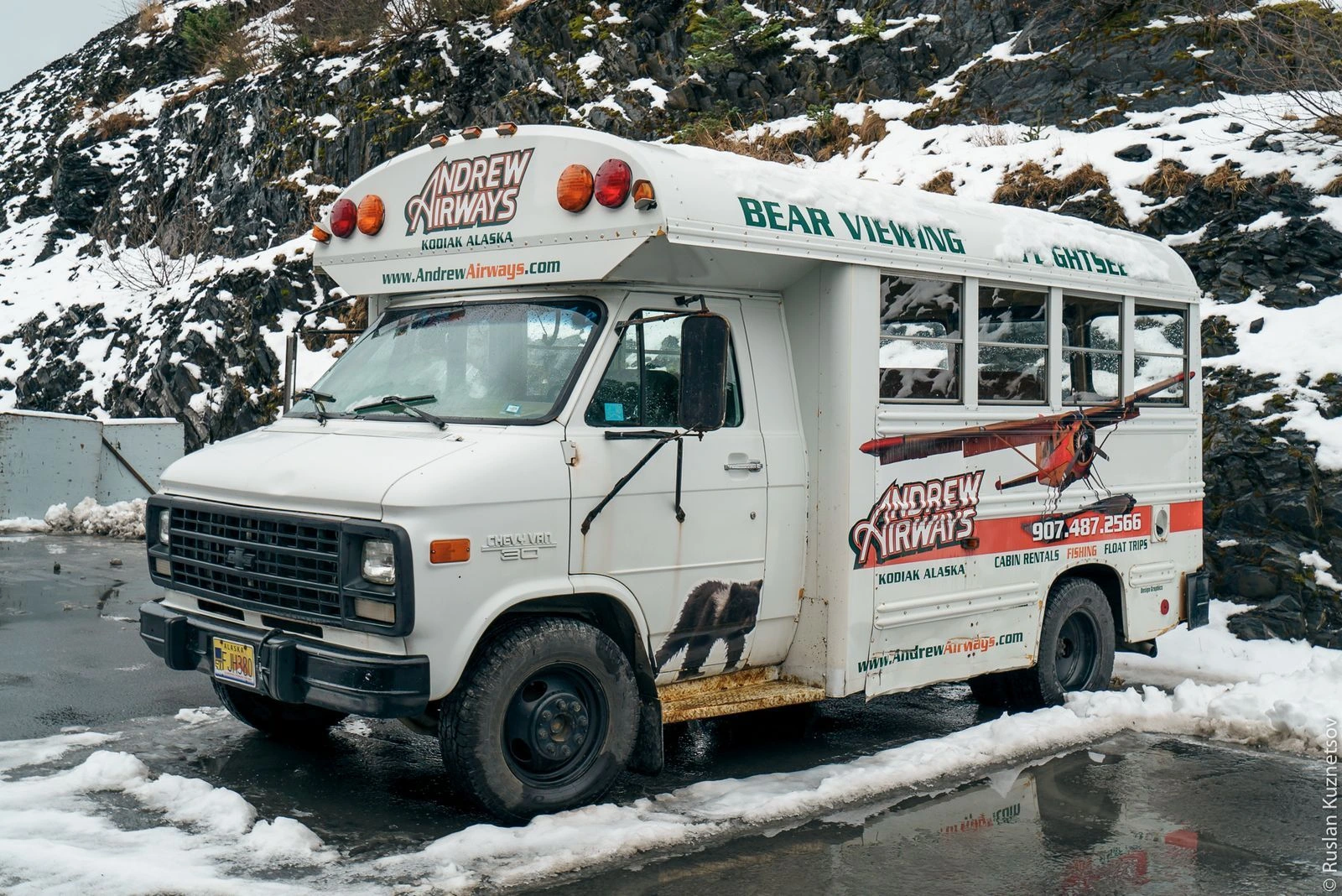 4. Former school bus is calling to see the bears, fishing and rafting.