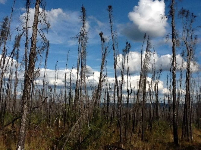 On roadsides scorched hundreds of kilometers once the forest ... Bare trunks blackened frenzy among the greenery. Life and death in one dimension.